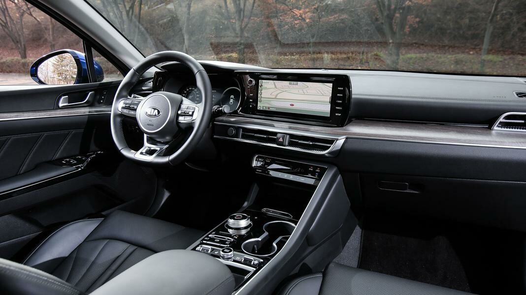 Интерьер корейского седана Kia K5 не менее удивительный и впечатляющий, нежели внешний вид. Салон автомобиля удивляет своей гармоничностью и строгой красотой. В интерьере удивительно сочетаются технологичность и некоторая простота. Простота выражается только в том, что в салоне нет ярко выраженных дизайнерских решений. Салон выглядит привлекательно и практично.